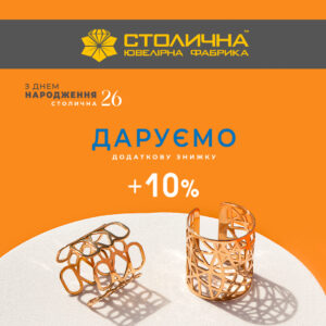 Столична Ювелірна Фабрика дарує додаткові 10% знижки з нагоди Дня народження компанії.