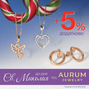 В ювелірній мережі AURUM вже діє святкова вигода: обирай вишукані прикраси та отримуй додаткову знижку 5% до Миколая