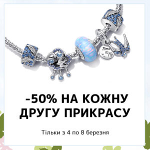 Обирайте особливі прикраси Pandora для себе і близьких та отримуйте знижку 50% на кожну другу прикрасу в чеку!