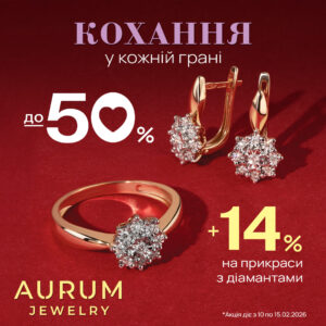 Свято кохання — ідеальний привід обрати прикрасу, яка говорить більше, ніж слова. В ювелірній мережі AURUM вже підготували для вас особливу пропозицію: