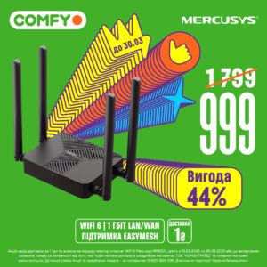 Посилання: https://comfy.ua/ua/marshrutizator-internet-wifi6-mercusys-mr62x.html