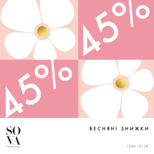Весна – це найкращий привід щоб додати нові свіжі акценти до своїх образів! Обирай ювелірні прикраси зі знижками до -45% у бутику SOVA