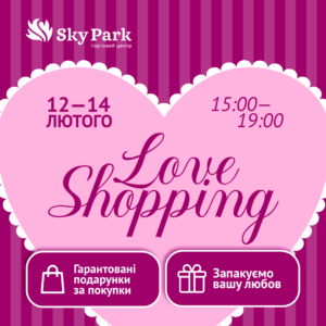 З 12 по 14 лютого ТРЦ Sky Park перетворюється на простір любові, приємних сюрпризів і подарунків. Купуйте, отримуйте гарантовані призи та пакуйте подарунки для коханих абсолютно безкоштовно в рамках святкової акції Love Shopping.